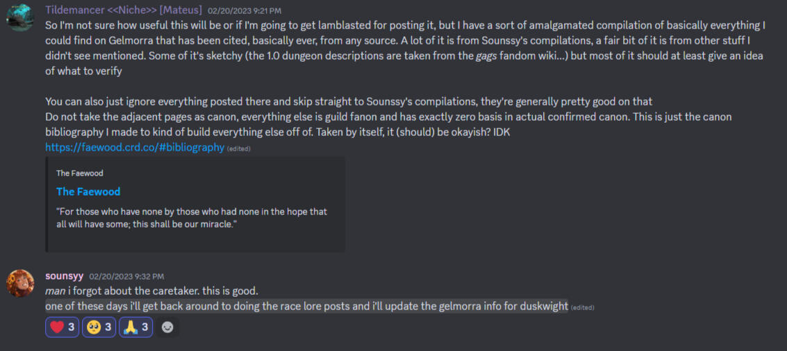 A compilatory source: Sounssy's Lore Compilation on Gelmorra